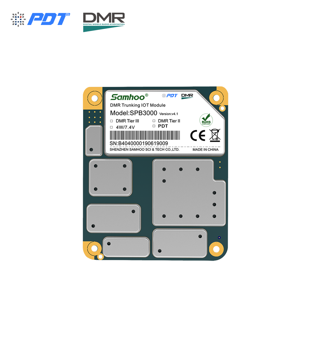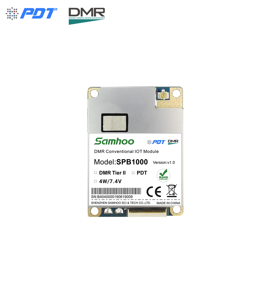 PDT&DMR 数字集群; 4W/7.4V 高功率; 350M,370M,400M; -123dbm 高灵敏度; 60*50*6.4mm 最小尺寸;